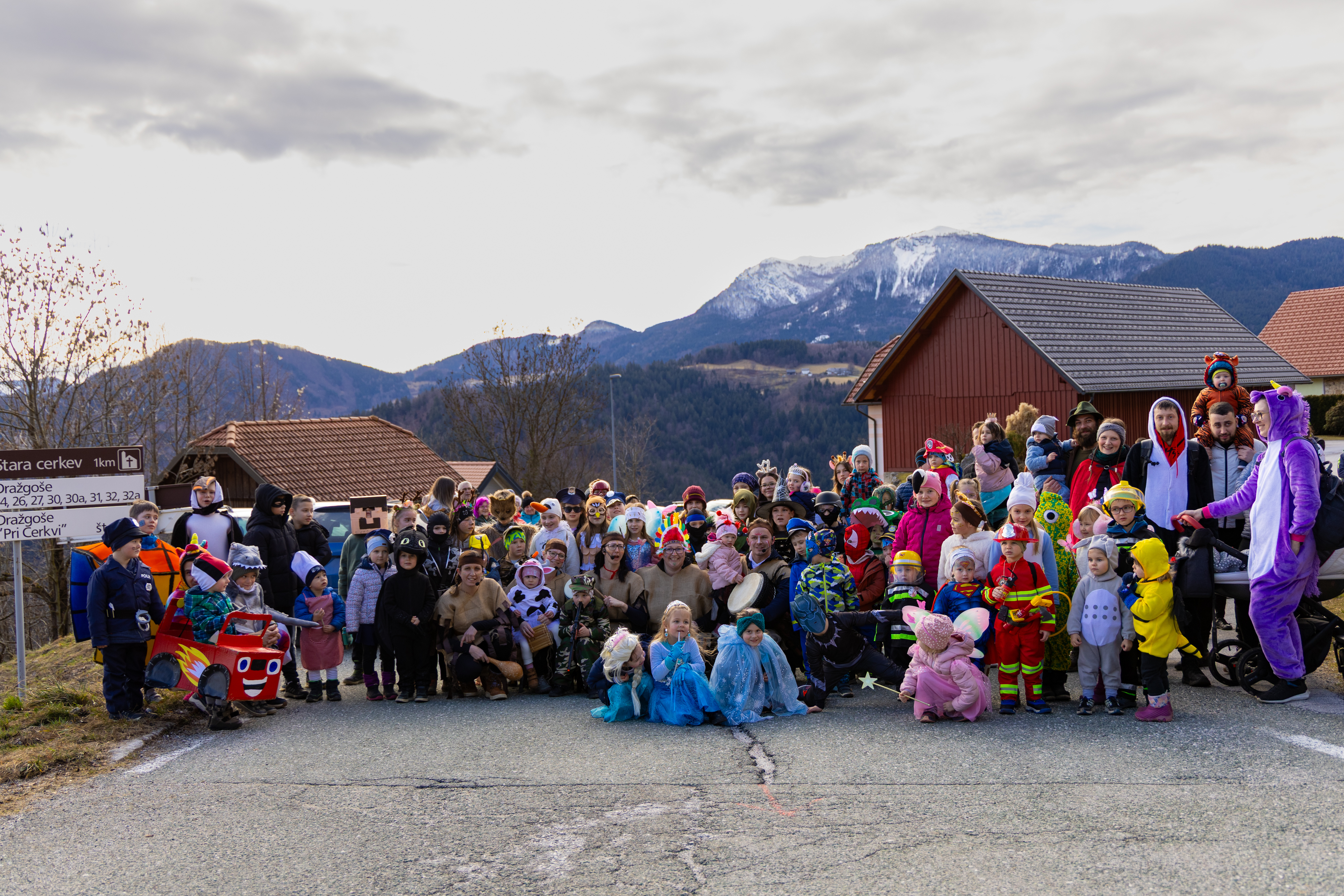 Na sobotni večerni veselici se v Dražgošah zberejo tudi številne maškare iz bližnje in širše okolice, ki s svojo domišljijo in ročno izdelanimi kostumi vsako leto znova poskrbijo za pravo razstavo pustne ustvarjalnosti. Letos je občinstvo najbolj prepričala izvirna maska radar, ki je osvojila prvo mesto. Konkurenca je bila izjemno pestra. Po dvorani so se sprehajali liki avtopralnice, spodnjih hlač, kokoši, preže, električnega pastirja, muh in še mnogih drugih domiselnih podob, ki so pričale o neizčrpni domišljiji pustnih ustvarjalcev. Mene osebno pa je najbolj navdušila maska Želodko superca –saj me je za trenutek vrnila v otroške dni.